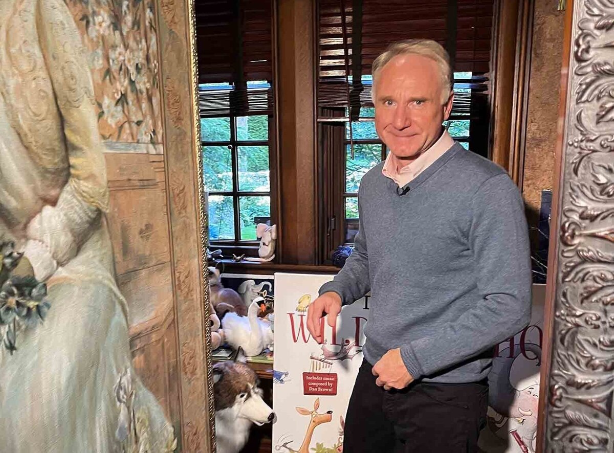 Na spojovacej chodbe je krásny veľký obraz. „Teraz sa pozerajte,“ upozorní nás Dan Brown, zatlačí na jednom mieste na obraz... a ten sa začne otvárať, pričom hrá hudba. Za ním je tajná miestnosť venovaná detskej knižke Divoká symfónia, ktorú napísal v roku 2020.